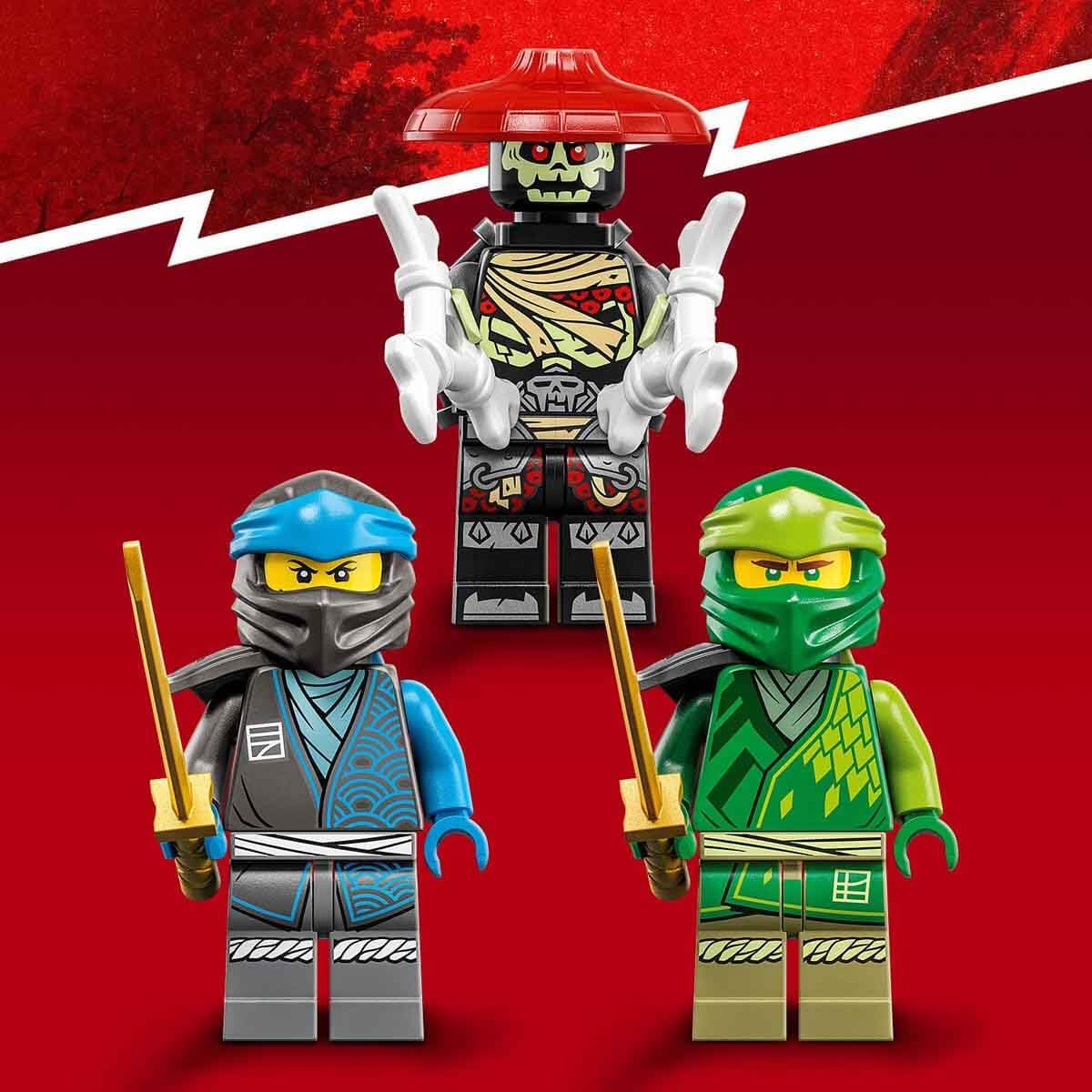 3 MINIFIGURES – THIS TOY SET COMES WITH NINJA WARRIORS NYA AND LLOYD, BOTH ARMED WITH SWORDS, AND THEIR ENEMY BONE GUARD, WHO HAS A BONE SHURIKEN AND 2 SWORDS TO USE AS WINGS