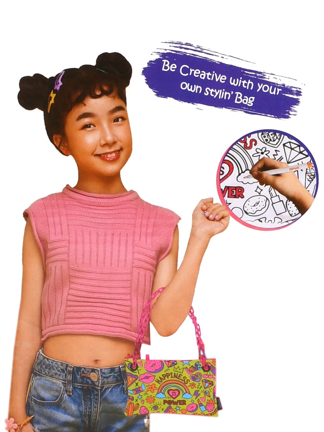 CRAFT MEETS FASHION : Flaunt your bag once you have finished coloring it. As it is made of 5 colors your artwork matches every outfit!