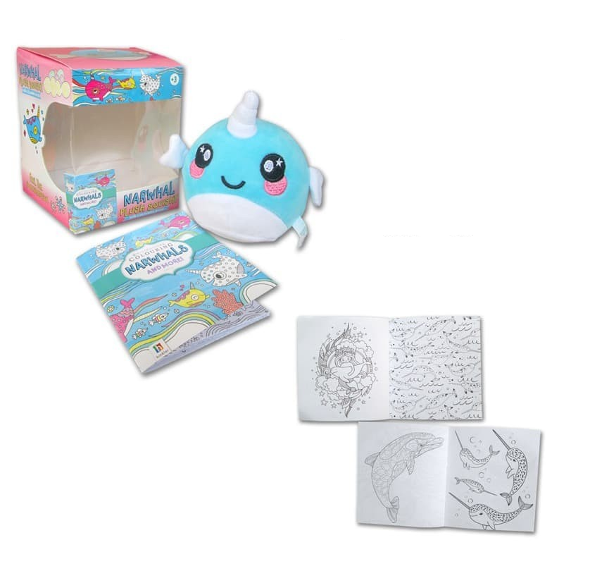 NARWHAL PLUSH SQUISHY WITH COLOURING BOOK