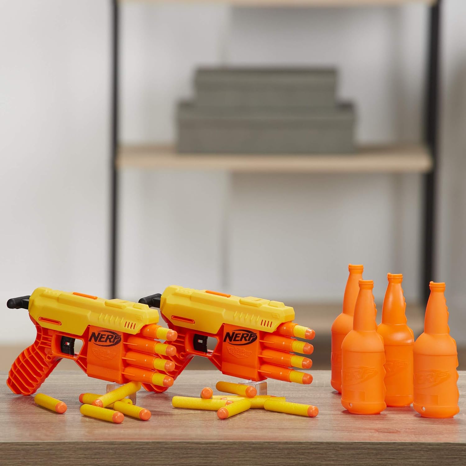 18-PIECE TARGET BLASTING SET: INCLUDES 2 FANG QS-4 BLASTERS, 4 HALF-TARGETS, AND 12 OFFICIAL NERF ELITE DARTS