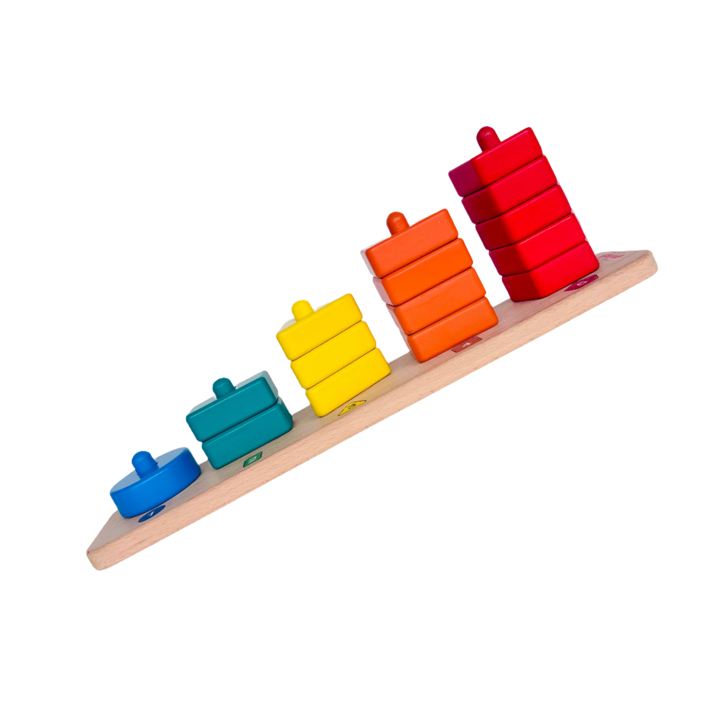 Made of solid wood and painted with non-toxic paints, this toy is both child-safe and eco-friendly. Your child will be captivated by the vibrant colors, diverse shapes, and engaging design of this versatile educational toy.