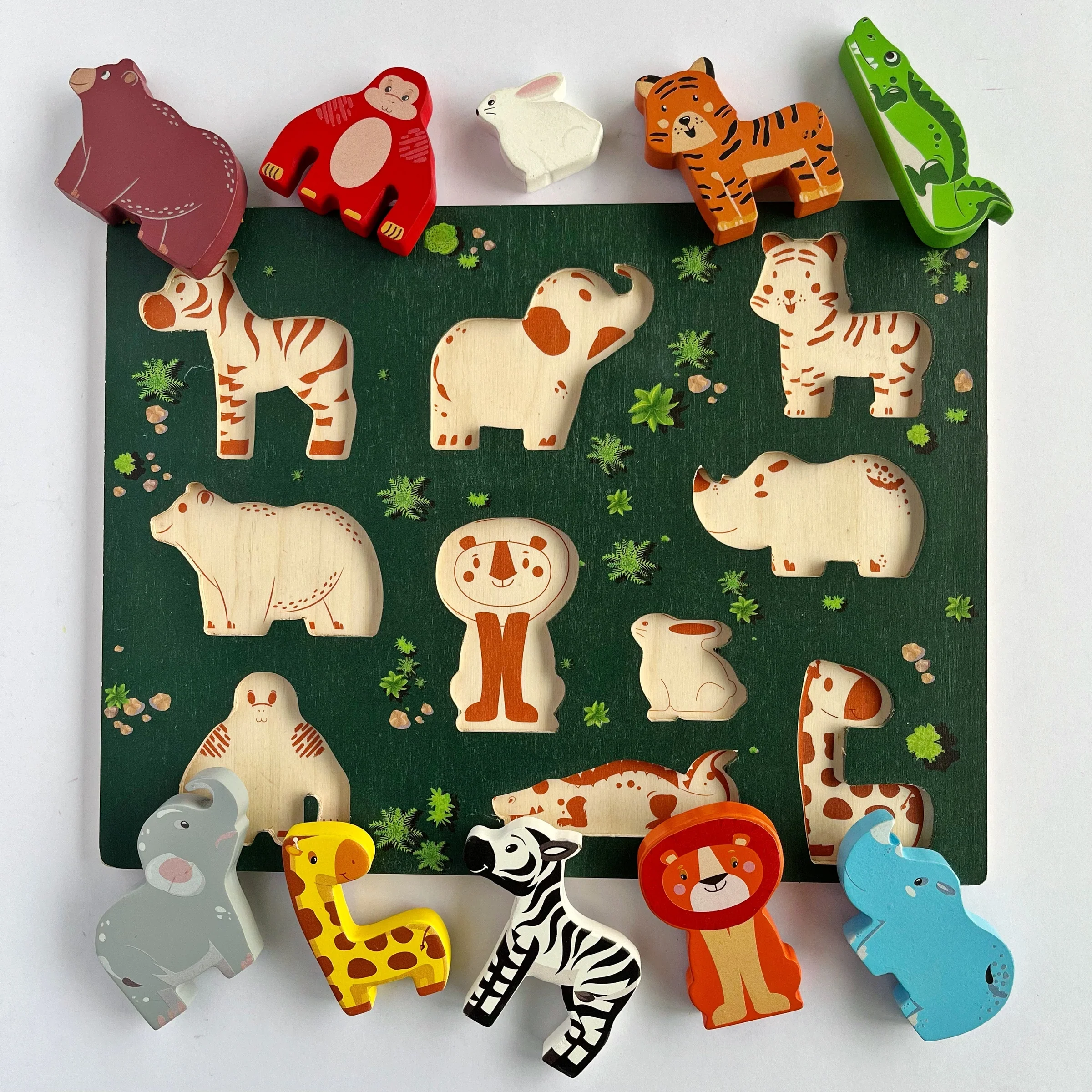 Includes - 10 Chunky self standing Animals and a play scene on the other side.