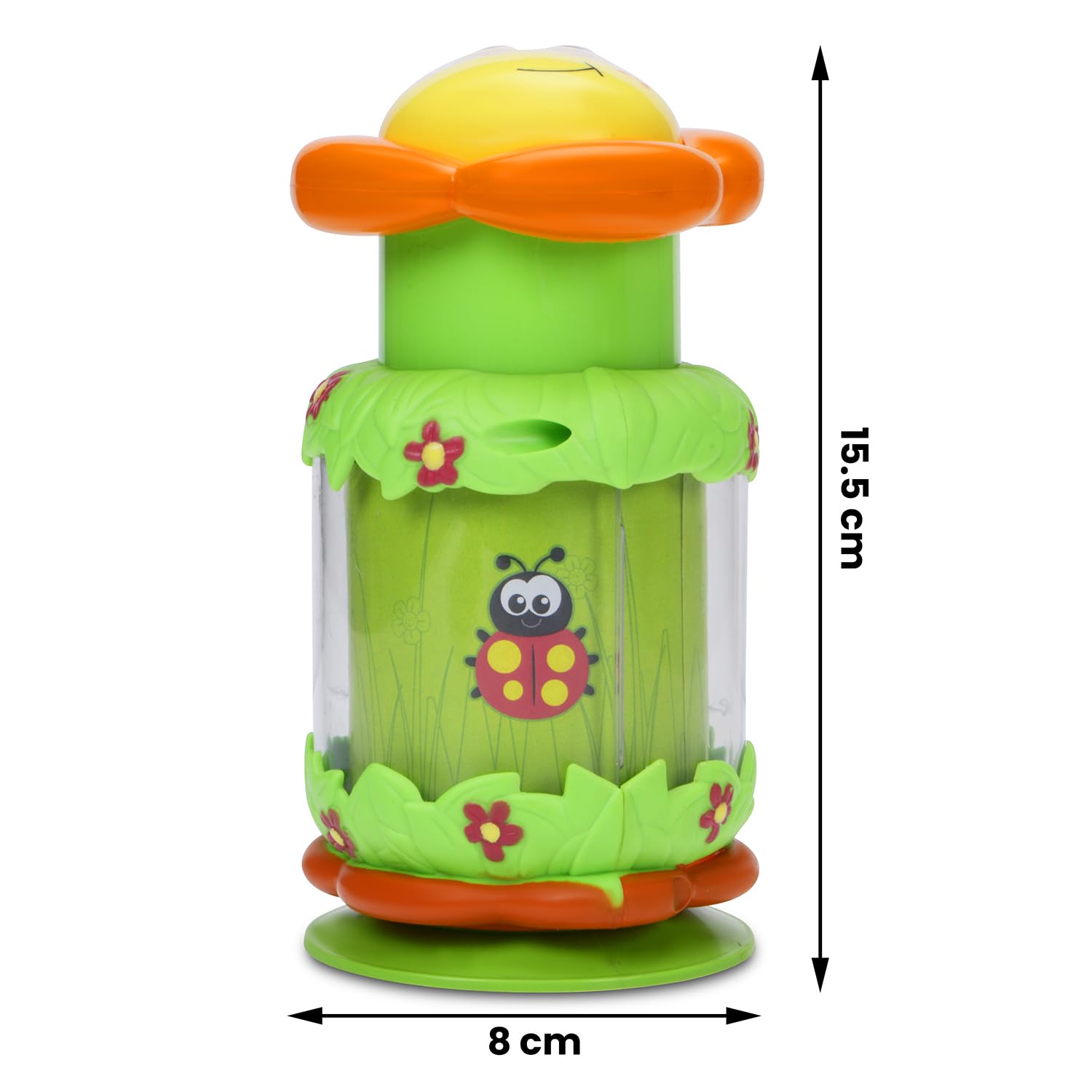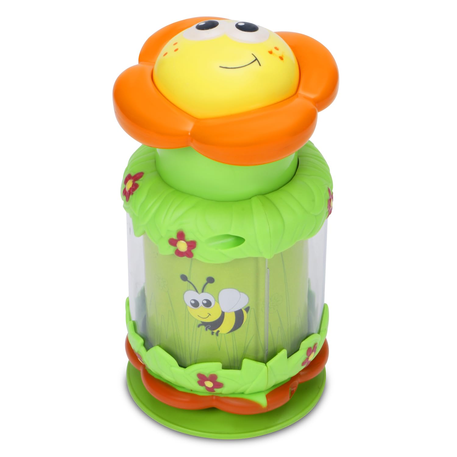 IF YOU CLICK ON THE MIDDLE OF THE FLOWER, IT WILL BEGIN TO ROTATE AND ATTRACT THE BABY’S ATTENTION WITH MOVING PICTURES DRAWN ON THE STEM.