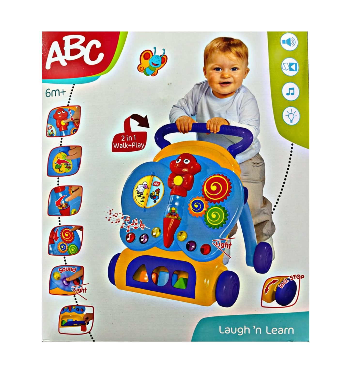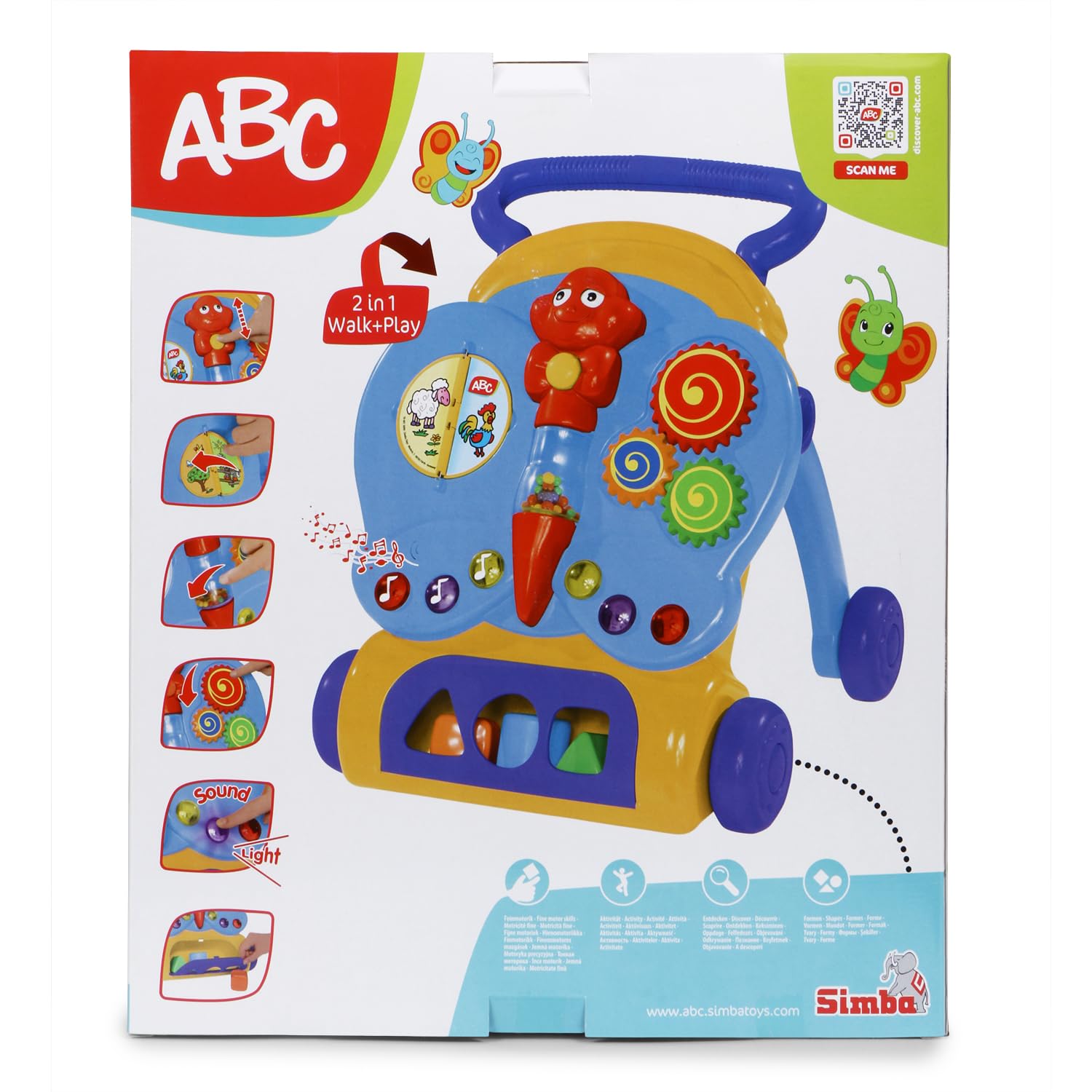 MAKE YOUR LITTLE DARLING WALK WITH THIS AMAZING ABC BABY WALKER FROM THE HOUSE OF SIMBA. A PERFECT WALKING COMPANION FOR YOUR BABY, IT FEATURES ATTRACTIVE COLOURS AND CUTE SHAPES. IT IS PERFECTLY APT FOR YOUR BABY TO DEVELOP SITTING UP, STANDING, WALKING AND PUSHING THE WALKER ALONG. THE ABC BABY WALKER IS MODELLED ON A BUTTERFLY AND IS PERFECT FOR HELPING TEACH YOUR CHILD TO WALK AS WELL AS HAVING LOTS OF DIFFERENT PLAY FEATURES. THE THREE COLOURFUL INTERLOCKING COGS CAN BE TURNED AND CHILDREN CAN INVESTIGATE THE LITTLE BOOK WITH THE FUN PICTURES. WHEN YOU PRESS THE BUTTON ON THE BUTTERFLY'S BODY, YOU HEAR A SQUEAKING NOISE AND THE EYES MOVE. THE INSECT'S BODY HAS A SEE-THROUGH ROLLER CONTAINING LOTS OF BRIGHT AND COLOURFUL LITTLE BALLS. WHEN YOU TURN IT, THE LITTLE BALLS RATTLE AND JUMP MERRILY AROUND. THE 3 SHAPE-SORTER HOLES HELP CHILDREN AGED 6 MONTHS AND OVER TO DEVELOP AN UNDERSTANDING OF SHAPE AND 6 KEYS PRODUCE ENTERTAINING SOUNDS AND TUNES.