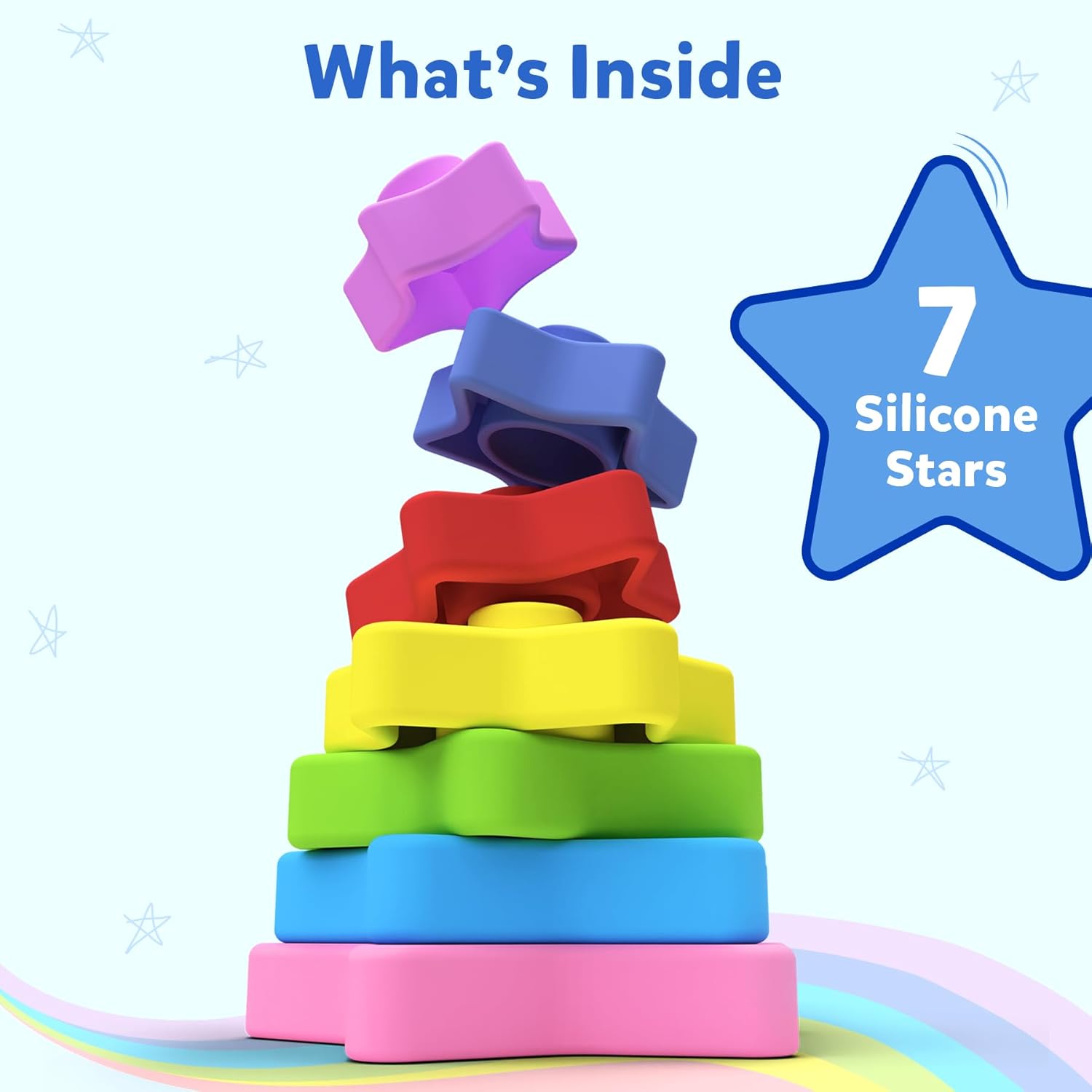 SILICONE STACKING TOY: SPARK YOUR CHILD'S IMAGINATION WITH SKILLMATICS' STARRY STACKER, WHICH INVOLVES SORTING AND STACKING VIBRANT SILICONE STARS. WITH IT'S UNIQUE DESIGN, THERE'S NO RIGHT OR WRONG WAY TO STACK, OFFERING ENDLESS POSSIBILITIES FOR PLAY.