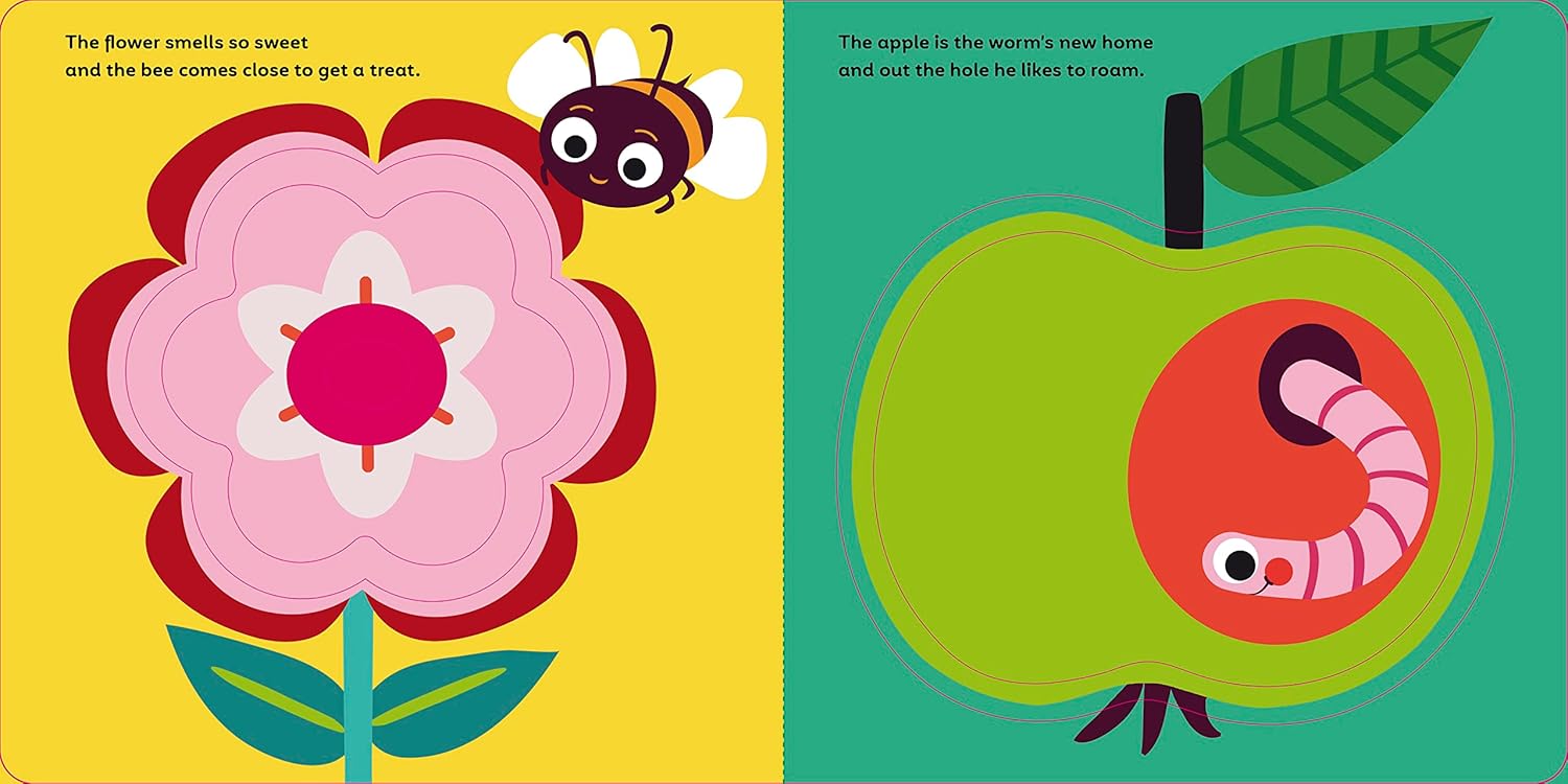 IN THE FIRST FEW YEARS OF LIFE, CHILDREN WILL EXPLORE AND UNCOVER THE WORLD AROUND THEM BY USING THEIR SENSE OF TOUCH. BY TOUCHING AND FEELING OBJECTS THEY DISCOVER, THEIR AWARENESS WILL BE REINFORCED. FIRST WORDS IS AN INTERACTIVE, TRACE-ALONG-THE-TRACKS TYPE BOARD BOOK DESIGNED TO BE FUN, COLORFUL AND ATTRACTIVE TO APPEAL TO CHILDREN FROM 0 TO 3 YEARS OLD. EACH PAGE HAS GROOVED INSET TRACKS PERFECTLY MADE FOR LITTLE FINGERS. CHILDREN CAN RUN THEIR FINGERS ALONG TRACKS AND TRACE THE DIFFERENT FUN SHAPES THEY MAKE, ENCOURAGING THEM TO EXPLORE WITH THEIR HANDS AND FINGERTIPS. THIS PROCESS HELPS TO EXPAND THE CHILD’S VOCABULARY AND SUPPORTS THEIR LANGUAGE DEVELOPMENT. THE ILLUSTRATIONS IN THE BOOK ARE DESIGNED IN A VIBRANT AND COLORFUL WAY TO BE PLEASING TO YOUR CHILD’S EYES. THE ENJOYABLE AND ENDEARING STORYLINE HAS CUTE RHYMES MAKING IT EASIER FOR CHILDREN TO REMEMBER AND MAKES VOCABULARY LEARNING MORE FUN! THE DURABLE, THICK COVER AND PAGES MAKE IT SIMPLE FOR CHILDREN IN THIS AGE GROUP TO EASILY GRASP AND HOLD THIS BOARD BOOK USING THEIR OWN HANDS. THIS HELPS TO SUPPORT A POSITIVE CONNECTION BETWEEN THE CHILD’S INTERACTION WITH THE BOOK AND HIS OR HER ONGOING DEVELOPMENT. THE BOOK CAN BE USED REPEATEDLY AND CAN ENDURE ALL MANNERS OF PLAY SUCH AS THROWING, PULLING, TEARING AND PUTTING IN THE MOUTH SO IT CAN BE READ AND ENJOYED OVER AND OVER AGAIN.